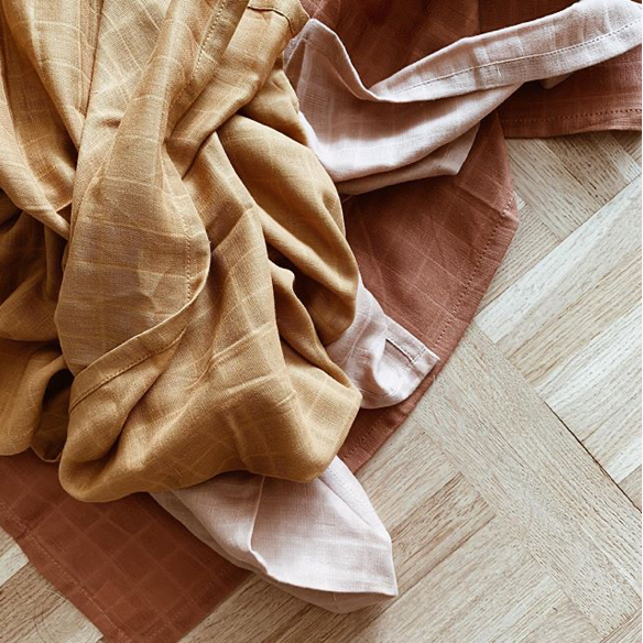 Emmaillotage, bavoir/essuie-bave, protection d’épaule, couverture légère ou drap de poussette.