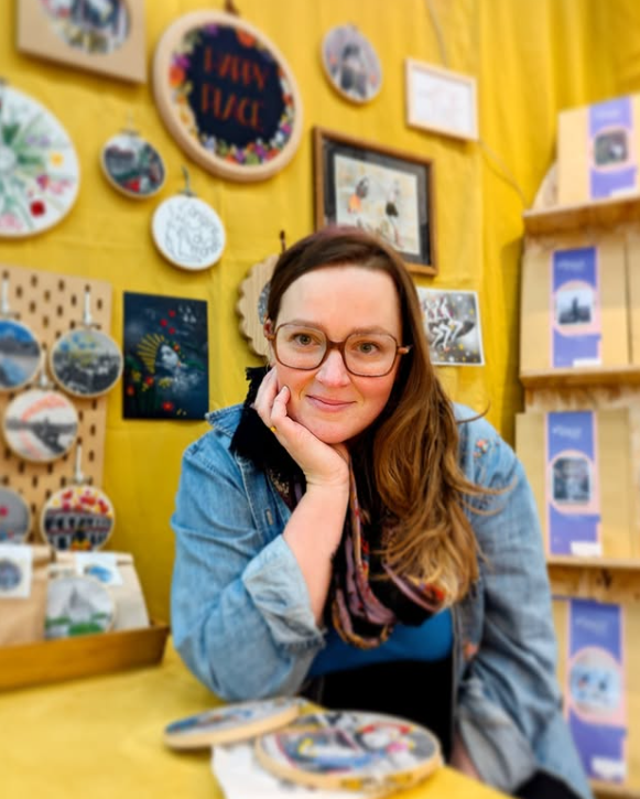 Un tambour 13 cm, un tissu imprimé à broder, une aiguille, 5 couleurs de fils et un livret explicatif.